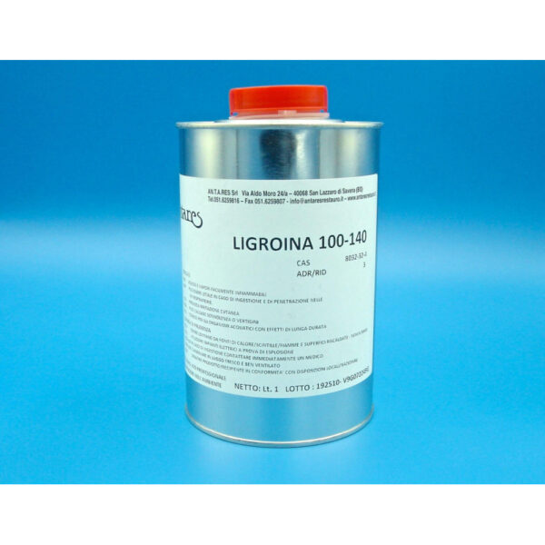 Ligroina 100-140 è un solvente idrocarburico dearomatizzato, polare, poco penetrante, volatile e a debole ritenzione usato come diluente e come solvente di alcune sostanze.