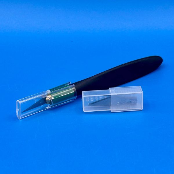 Il trincetto viene fornito con 5 lame di ricambio incluse nella confezione, per un totale di 6 lame, tutte molto sottili (spessore 0,45 mm) e estremamente affilate. È consigliabile maneggiare con la massima attenzione e conservarlo in un luogo sicuro, fuori dalla portata dei bambini.